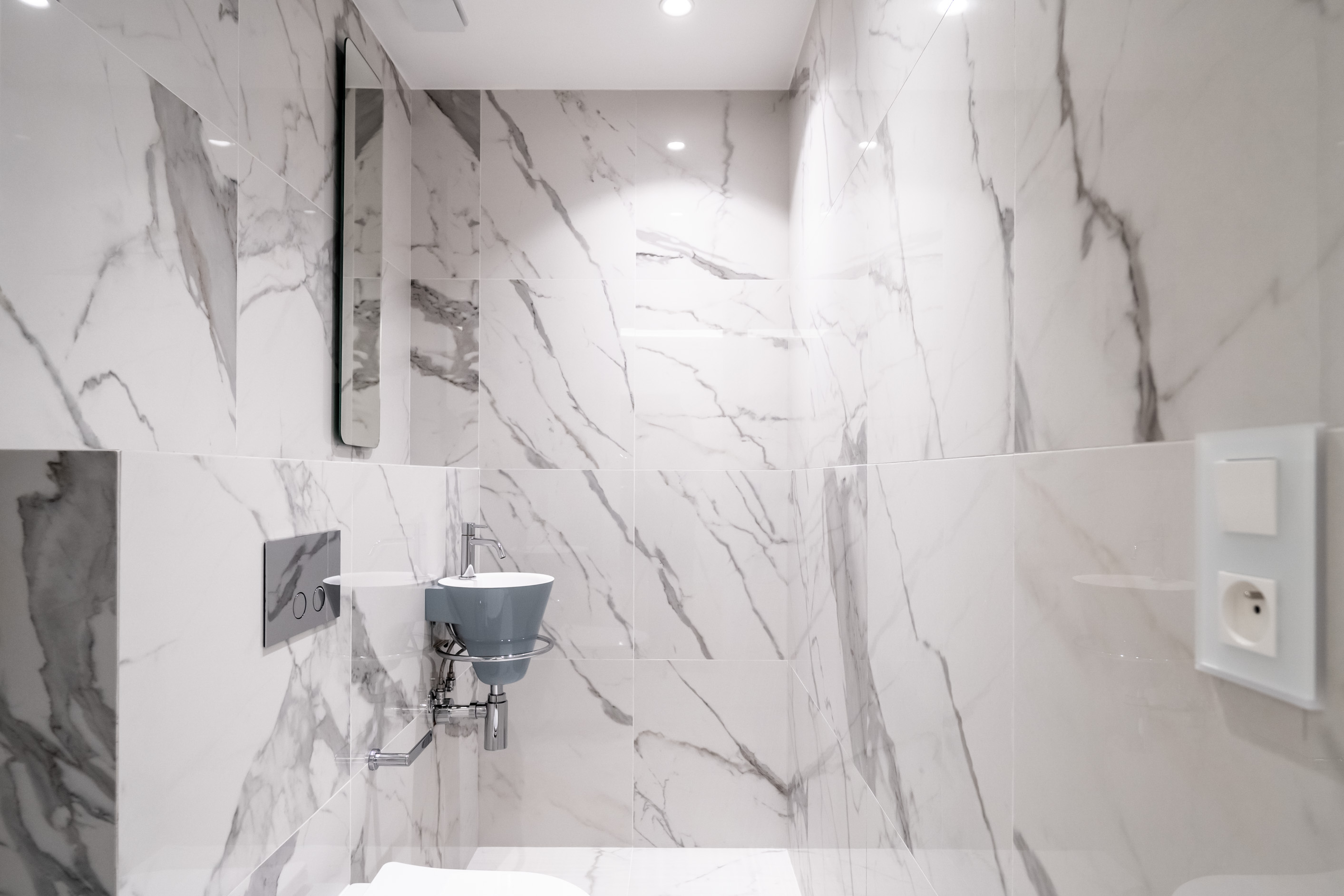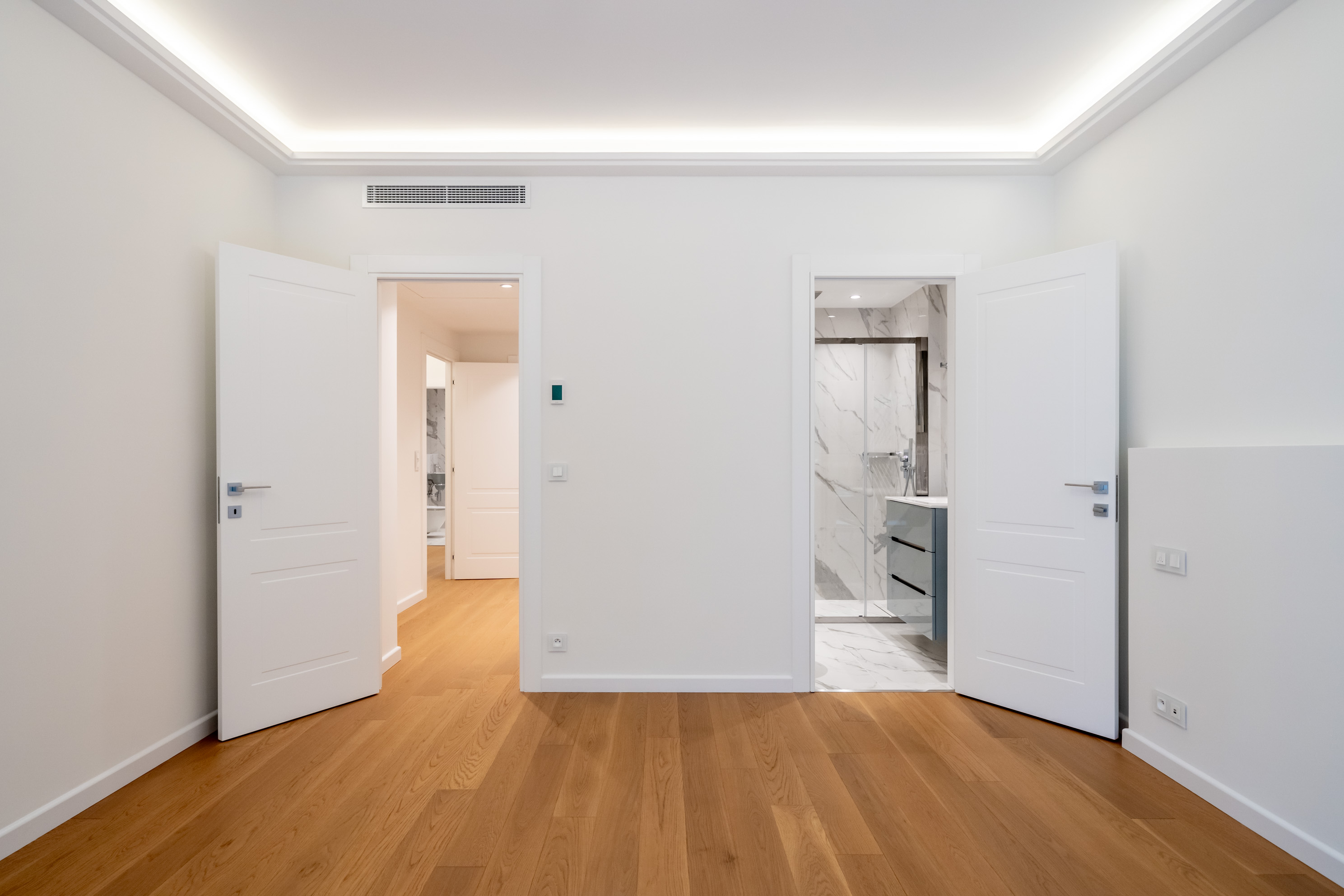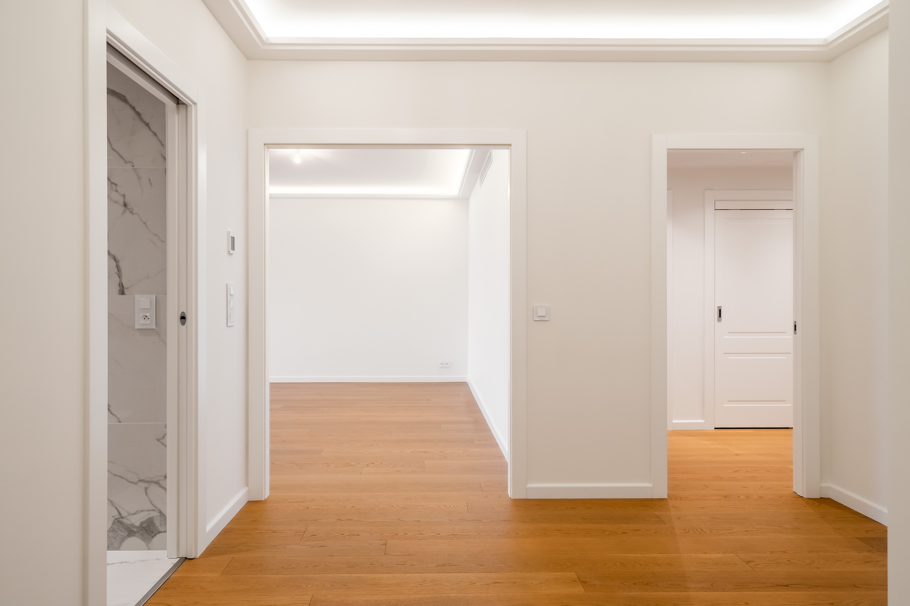 Démolition et curage complet, reprise des ouvrages de maçonnerie, réalisation des chapes, mise en œuvre des réseaux sanitaires, des installations de chauffage, climatisation et aéraulique, ainsi que des installations électriques CFO/CFA, puis pose des revêtements durs (carrelage, pierre) et des revêtements souples.