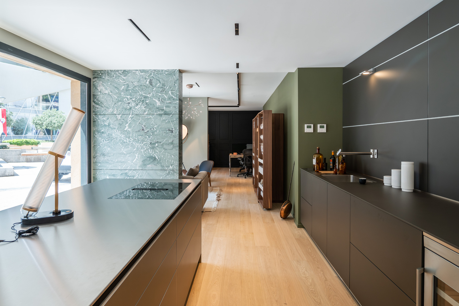 Dépose des équipements existants, comprenant les luminaires encastrés et les revêtements muraux, reprise des coffrages de poutres en plafond, création de cloisons en plaques de plâtre (BA13), puis réfection des enduits et travaux de peinture.